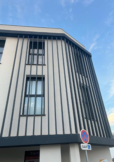 Une façade graphique et technique pour une signature architecturale forte à Béziers.