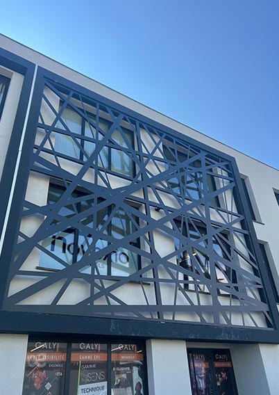 Découpe laser, structures métalliques sur mesure et finitions soignées : SR MÉTALLERIE sublime les volumes et affirme le caractère du bâtiment. Sur l’opération SCI CÔTÉ SUD, à Béziers, notre entreprise a été missionnée pour la réalisation complète de l’habillage de façade. Un chantier d’envergure, mêlant précision technique et rendu esthétique, au service de l’identité architecturale du projet. Nous avons assuré la fabrication et la pose de structures en tubes métalliques 100×50, qui dessinent la trame de la façade. Un élément phare du projet : une résille en tôle découpée au laser, modèle MIKADO 53, d’une dimension imposante de 7,50 m par 6,00 m, apportant une signature visuelle originale et contemporaine.