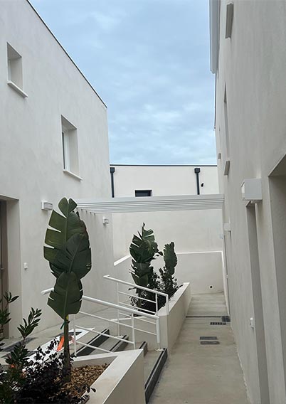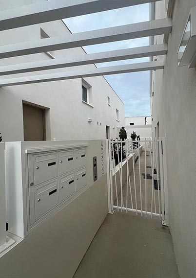 Sur la résidence LA COLLINE, un ensemble de 6 logements individuels situé à Boujan-sur-Libron, notre équipe est intervenue dans le cadre du lot serrurerie. Nos travaux ont porté sur des éléments à la fois techniques et esthétiques : clôtures barreaudées, portillons, garde-corps, pergolas métalliques et caillebotis ont été réalisés sur mesure pour répondre aux exigences du projet.